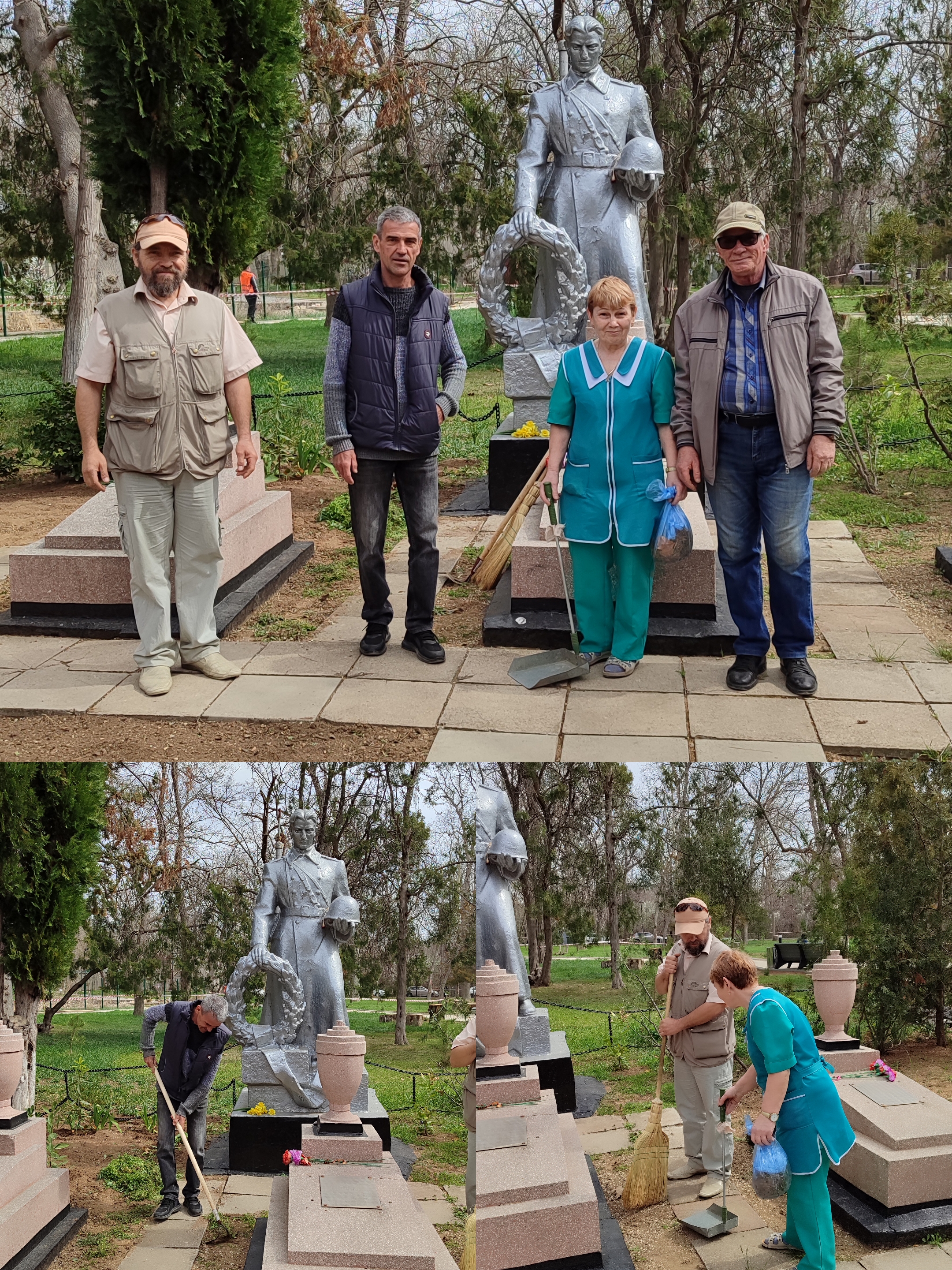 Курортный парк в городе Саки хранит историческую память о воинах, мужественно защищавших родную землю и отдавших за неё свои жизни в годы Великой Отечественной войны. На территории парка располагается обелиск Славы и Вечный огонь в память о жителях нашего города, принимавших участие в освобождении Родины от немецко-фашистских захватчиков. В тени аллей парка расположена братская могила со скульптурным памятником и шестью надгробными плитами погибших в годы войны лётчиков Советской Армии. В преддверии 80 годовщины Победы в Великой Отечественной войне в знак глубочайшего уважения к подвигу наших героев, отдавших свои жизни за мирное небо над головой, работники Сакского районного суда Республики Крым на территории мемориального комплекса провели субботник. С особым вниманием работники суда отнеслись к уборке и облагораживанию территории вокруг Вечного огня, символа неиссякаемой памяти о павших воинах. Были приведены в порядок могилы героев, чьи имена навсегда вписаны в историю нашей страны. Участие в таких мероприятиях напоминает о важности сохранения исторической памяти о прошлом, о героизме и самоотверженности наших соотечественников, ценой своих жизней отстоявших мир. Подвиг солдат Великой Отечественной войны навсегда останется в наших сердцах.