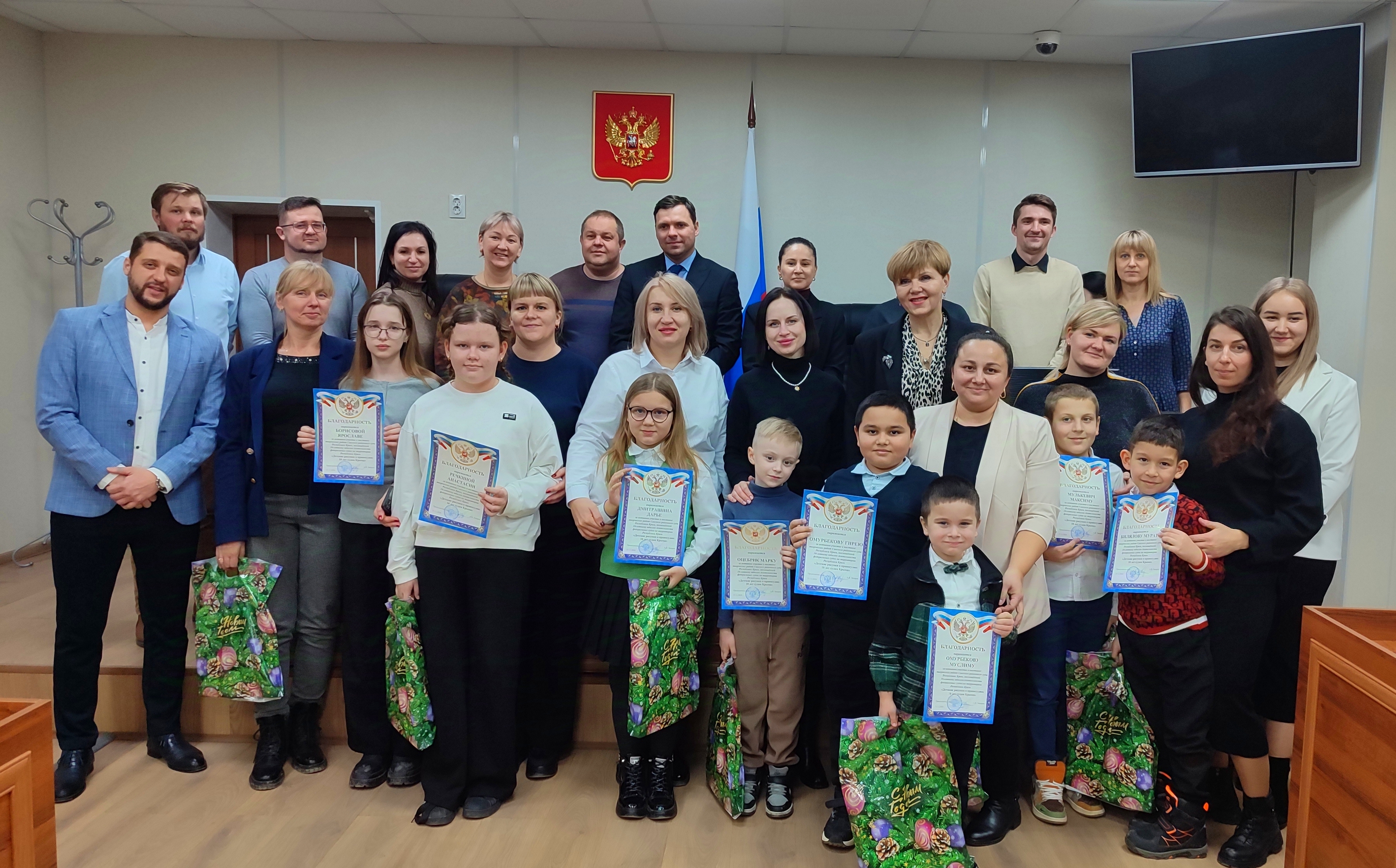 В Сакском районном суде Республики Крым в торжественной обстановке в присутствии коллектива состоялось награждение участников выставки творческих работ под названием «Детские рисунки о правосудии: 10 лет судам Крыма», приуроченной к 10-летнему юбилею деятельности судов на территории Республики Крым. Председатель суда Александр Владимирович Захаров с теплотой и искренней признательностью вручил благодарности и памятные подарки юным художникам, пожелав ребятам крепкого здоровья и дальнейших успехов в творчестве.